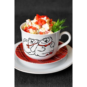 Я решила поднять настроение мужу и разложила салатник в такие вот забавные кружки |