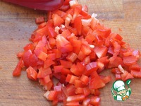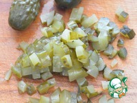 Маринованный огурец также мелко нарежьте и слегка отожмите от жидкости |