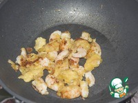 Замешиваем кляр из крахмала, яйца, соли, перца и вина. Обмазываем кляром креветки и обжариваем их на сильно разогретом растительном масле до готовности |