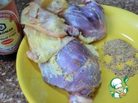 Ножки утки вымыть, обсушить. Кожу аккуратно снять, не разрывая и оставить на косточке. Обмазать мясо смесью перцев. |