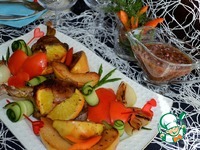 Лук порезать на четвертинки, перец кусочками. Не поленитесь, нарежьте фигурно. Обжарить на растительном масле до готовности. Отложить. |