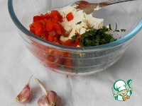 Фету размять вилкой, добавить нарезанный укроп, печеный перец и измельченный чеснок. Тщательно перемешать. |