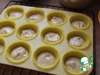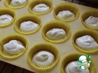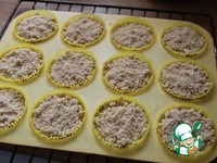 Выложить формочки для кексов в основу. И заполнить донышко основным тестом. |