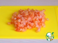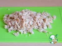 Куриное филе отварить в подсоленной воде, затем порезать мелкими кубиками. |