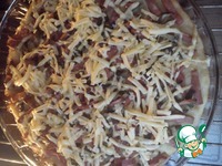 Описание: Этот пирог в рецепте идет с начинкой из тушеной капусты, я сделала начинку как на пиццу, так как пекла пирог на завтрак. Пирог очень сытный. Этот рецепт мне понравился потому что я не люблю тесто настаивающееся с дрожжами, а это тесто быстро замесил и уже готово.