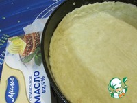 Затем припылить мукой рабочую поверхность. Тесто раскатать и уложить в форму (23 см). Тесто наколоть вилкой. |