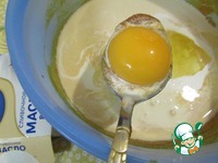 Добавить молоко, сливки и яйца. Перемешать до однородности. |