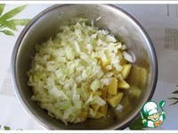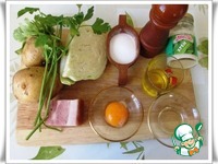 Салат должен подаваться на стол горячим, поэтому важно предварительно подготовить все продукты. Картошку очищаем, капусту нарезаем пластинками 1х1 см, грудинку режем соломкой, петрушку измельчаем. |