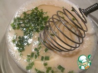 Духовку разогреть до 180 градусов. Яйцо слегка взбить, добавить оливковое масло, молоко и мелко порезанный лук. Все перемешать. |
