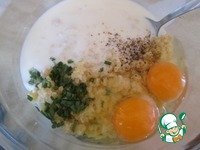 К хлопьям добавить яйца, кефир, соль, перец и зелень (у меня зеленый лук). Все перемешать, добавить муку и разрыхлитель. Еще раз хорошо вымешать. |