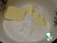 Размягченное масло (я просто оставила на столе на часик) и сметану размять руками до более ли менее однородной массы. |