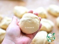 Тесто должно быть упругим, почти не липнуть к поверхности, пышным. Разделить тесто на равные части (у меня 9 шт). |