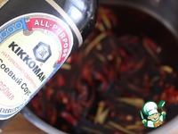Выложить в сотейник имбирь и перец, влить соевый соус, добавить уксус и довести до кипения, варить пару минут. По вкусу добавить сахар или не добавлять его совсем, накрыть крышкой и отставить. |