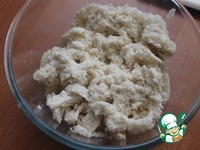Добавить к куриному фаршу лук, оливки и хлеб, яйцо, специи и соль. Перемешать. |