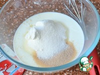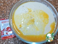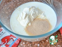 В просеянную муку влить 1 стакан теплого кефира, дрожжи. Советую использовать сухие дрожжи от САФ - МОМЕНТ, великолепно работают, отличный подъем обеспечен. |