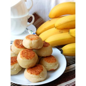 Банан почистить, нарезать на кружки. Шоколадку поломать на небольшие кусочки. В центр "лепешки" положить кружок банана, сверху кусочек шоколадки. |