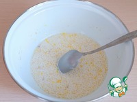 В миске соединить молоко (1 стакан) и воду (1/2 стакана). Смесь подогреть. Смесь должна быть теплой. |