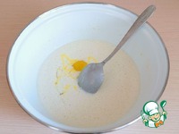 Добавить муку (80 гр). Смесь еще раз хорошо взбить и оставить на 10-15 мин. После можно приступить к выпеканию блинов. |