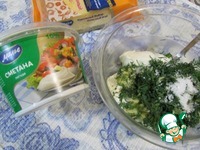 В миске смешать сметану ТМ Милье, укроп, чеснок. Добавить соль (начинка не должна быть пресной!). Перемешать. |