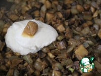 На сливочном масле обжарить грибы с луком до полного испарения влаги. |