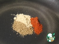 На сухой разогретой сковороде буквально минуту обжарить специи. |