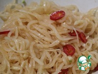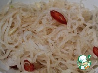 Специи добавить в дайкон. Чили порезать колечками (я не убираю семена)и добавить в дайкон. |