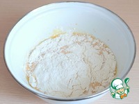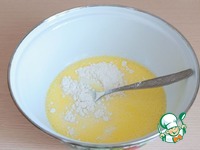 Из общего количества муки взять 1 ст. ложку и добавить в смесь молока и масла. |