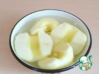 Яблоки почистить, удалить сердцевину. В миску добавить воду и 1-2 ст. ложки лимонного сока. Сок предотвратить потемнение яблочных долек. |