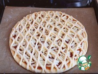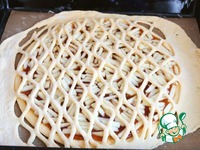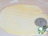 Раскатать меньшую часть теста. При помощи ролика- ножа вырезать сетку для оформления верхней части пирога. |