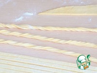 Остатки теста раскатать в пласт, вырезать полоски. |