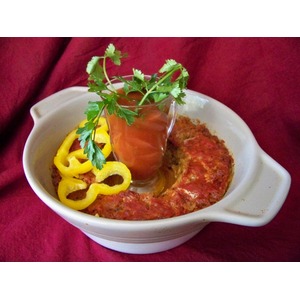 Покрываем соусом поверхность нашего блюда после чего, прикрыв верх запеканки пергаментом для сохранения чистоты микроволновки, включаем её ещё на 4-5 минут! |