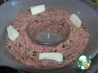По истечении времени достаём блюдо и выкладываем кусочки сл. масла на повехность фарша. Включаем печь на 3-4 мин. |