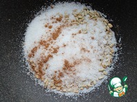 Добавить сахар, корицу и растительное масло. Держать на среднем огне до тех пор, пока сахар полностью не расплавится и не "пристанет" к семечкам. |