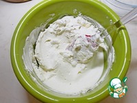 Для приготовления крема взбить сливки с сахарной пудрой до мягких устойчивых пиков, добавить творожной сыр (или гладкий творог) и снова взбить. |