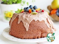 Достать из холодильника, перевернуть на блюдо, освободить торт от пленки, покрыть шоколадной глазурью и фруктами. Для приготовления глазури, шоколад растопить и разбавить с молоком. |