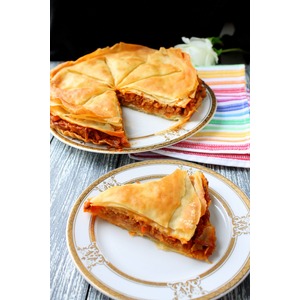 Описание: Румяный, слоистый пирог с хрустящей корочкой и сочной начинкой. Отлично подойдет, как на праздничный стол, так и для домашнего чаепития.