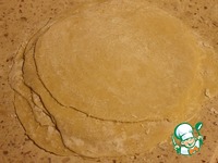 Далее, берем по две лепешки и раскатываем их до диаметра 24 см. |