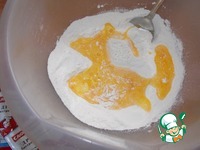 Добавить в мучную смесь взбитые яйца. |