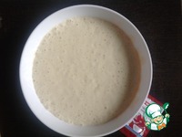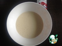 Для начала необходимо приготовить опару. В миску налить подогретое молоко, добавить 1 ст. л. сахара и дрожжи. Дать постоять, пока дрожжи "заработают" (на поверхности появятся пузырьки). |