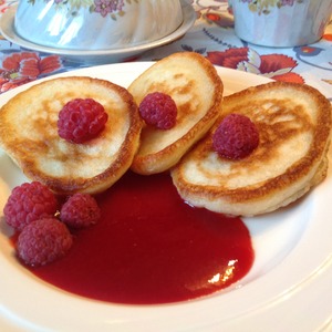 В сковороде разогреваем растительное масло и жарим оладьи. Готовые оладьи сервируем и сразу подаём к столу с малиновым соусом. Приятного аппетита! |