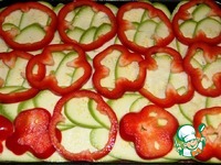 Перец тонко нарезают и выкладывают поверх кабачков. |