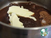 В сотейник влить воду, добавить сахар, какао-порошок и сливочное масло. Ставим на огонь и, постоянно помешивая, доводим до кипения. |