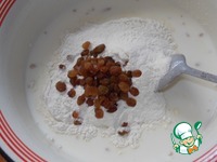 Добавить изюм, перемешать до однородности. Тесто должно быть, как очень густая сметана. Жарить оладушки в небольшом количестве растительного масла. |