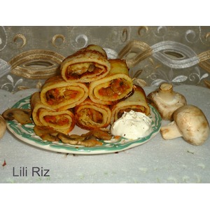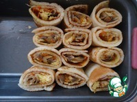 Описание: Овощная начинка блинных рулетиков состоит из грибов, лука и моркови, сочная и гармоничная. Советую попробовать.