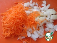 Для начинки необходимо лук нарезать кубиками, морковь натереть на крупной терке. |