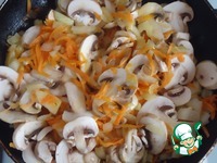 Пережарить лук, морковь и грибы, добавить соль и перец. Начинка готова. |