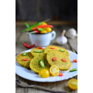 Описание: Очень вкусные, пышные оладушки из нутовой муки с куркумой, чесноком и зеленью! Отлично в качестве закуски, на ужин, на второе с овощами или сметаной! К тому же такие оладьи разнообразят ваше меню во время Поста!