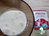 В теплое молоко добавить сахар и дрожжи. Накрыть опару, поставить в теплое место подходить. |