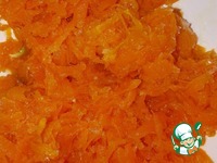 Натереть на крупной терке тыкву (в моем случае была уже натертая мороженная тыква, я ее подогрела в микроволновой печи) отжать сок. |