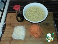 Ставим вариться в 4 литрах воды наши куриные шеи. ПРосле того как они закипят, снимаем пену, в бульон закладываем луковицу неочищенную, 2 листа лаврушки и душистый перец. |